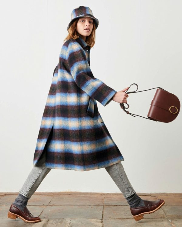 Winter bobby bob in napped heavy tartan pattern weaving woven in Italy, made in Portugal.