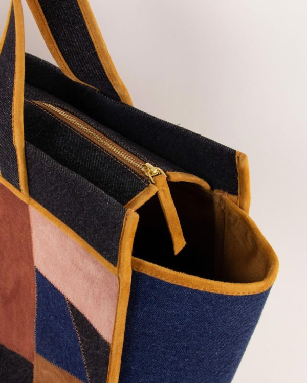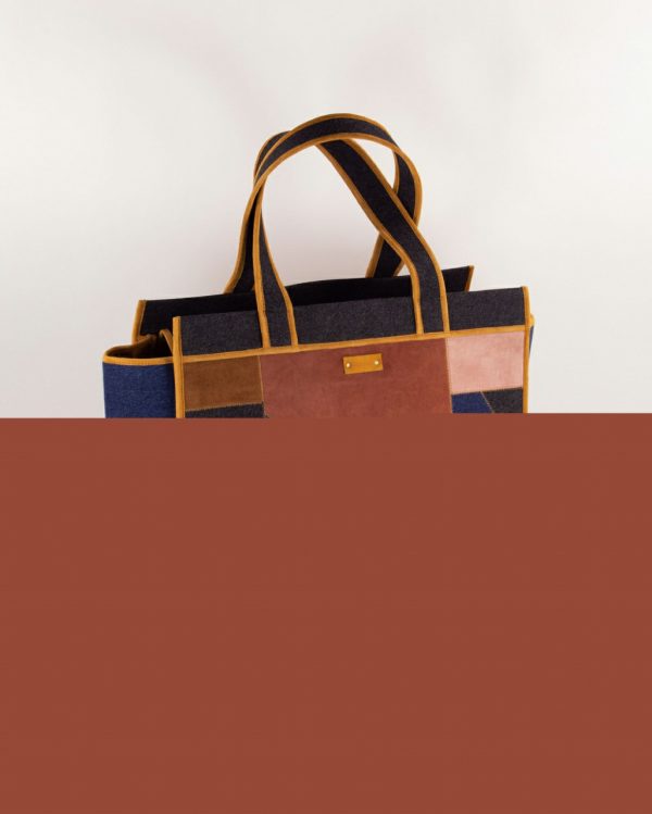 Lester L Arp large travel bag in denims and colored split leathers patchwork, exclusive Sessùn patchwork.