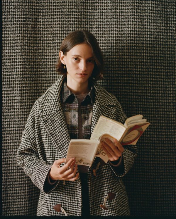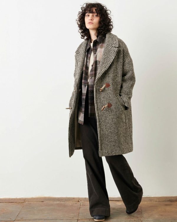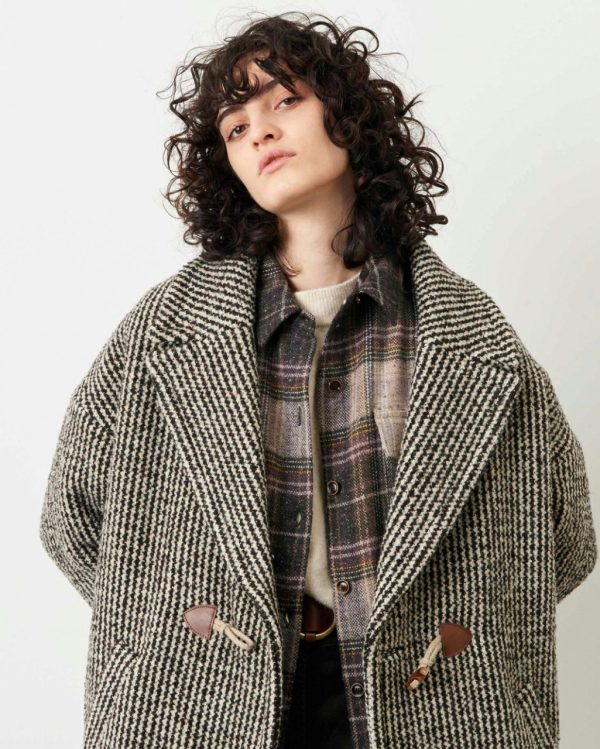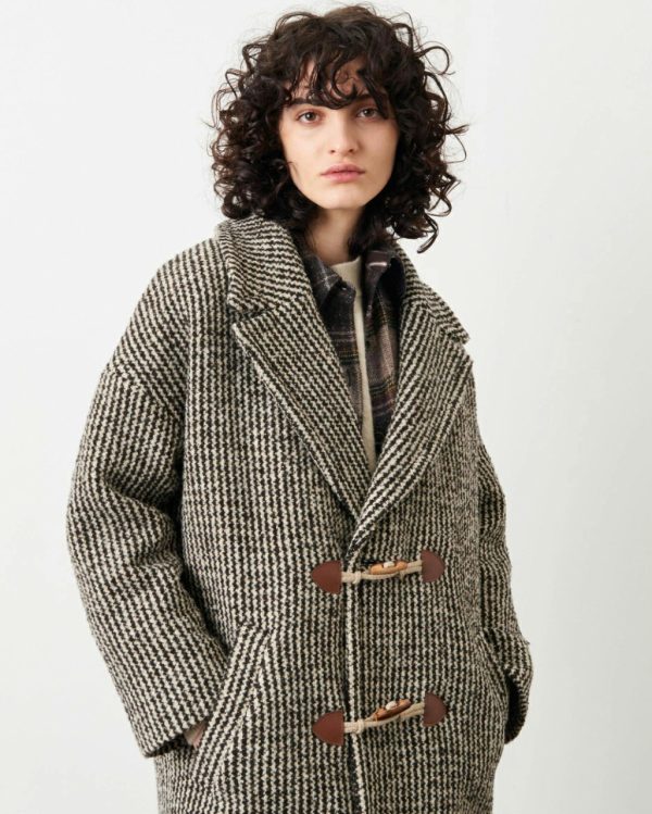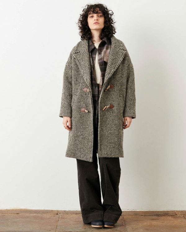 Bogart duffle coat spirit oversize coat in looped yarn houndstooth pattern double woven fabric woven in Italy.