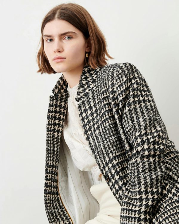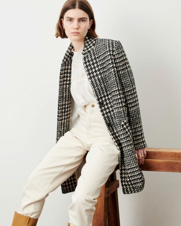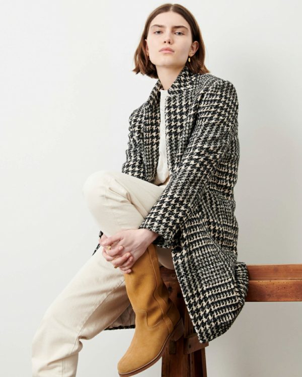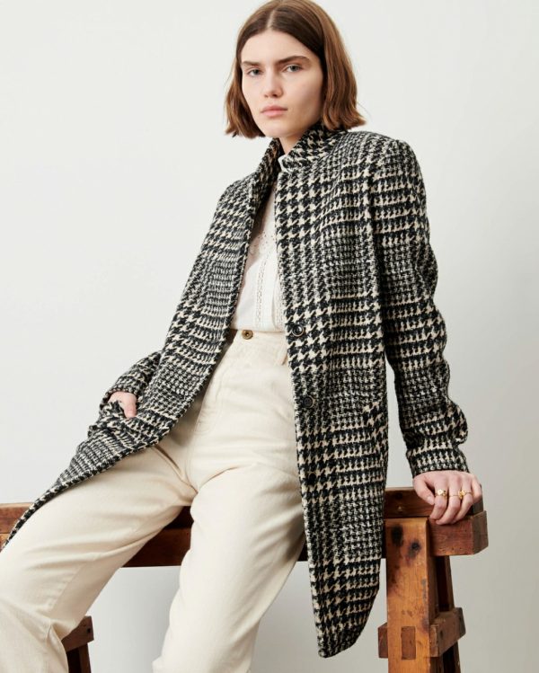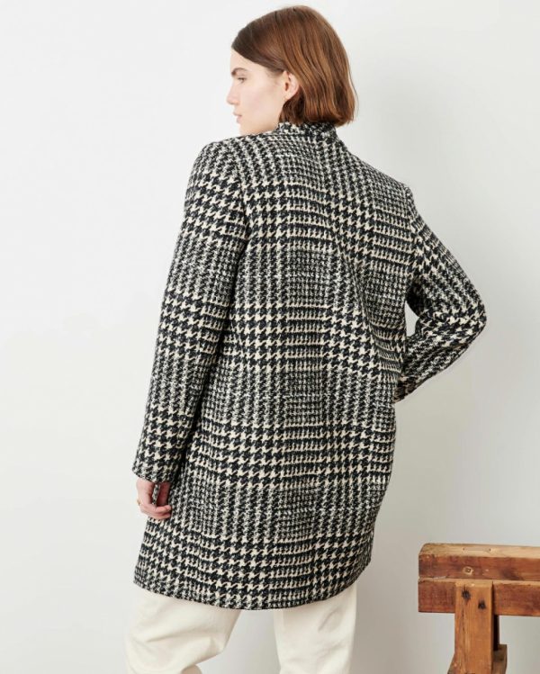 Levens Fall straight coat in fancy houndstooth tartan pattern weaving, exclusive Sessùn
