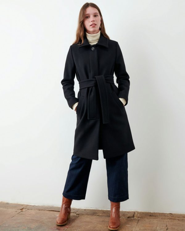 Martin straight coat in double fancy weave, woven in Italy.