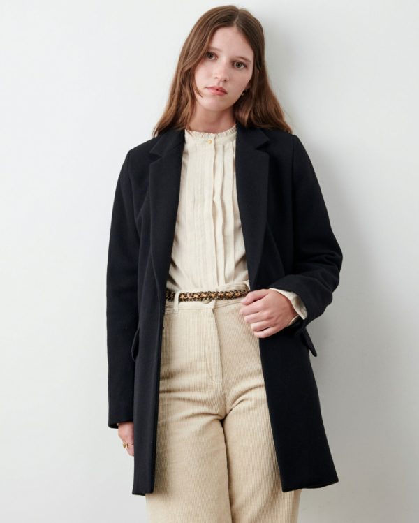 Nu Dol overcoat in woollen cloth woven in Italy.