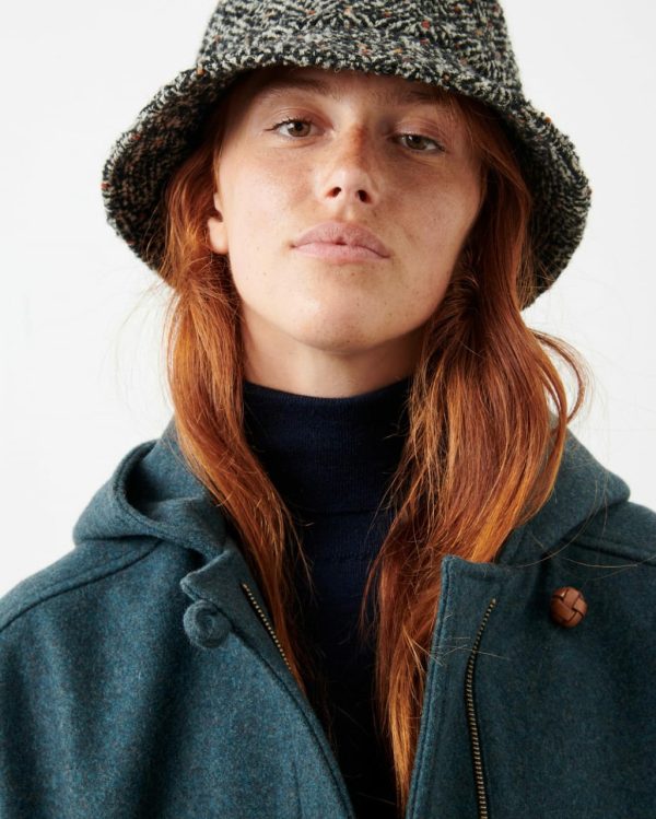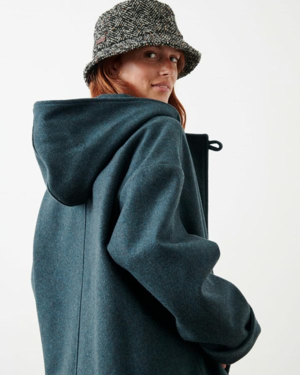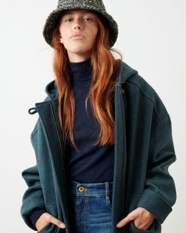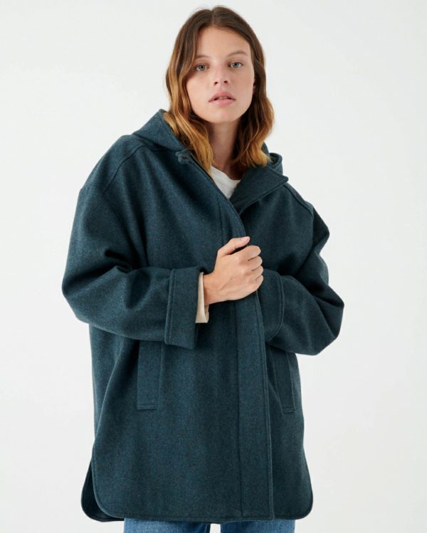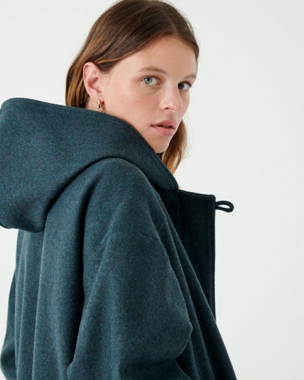 Nana oversized hooded coat in recycled woollen cloth, woven in Italy.