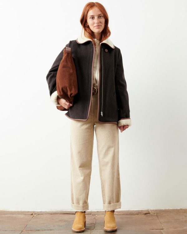 Fully lined model: faux sheepskin lining on body and on top of collar, quilted lining for sleeves.