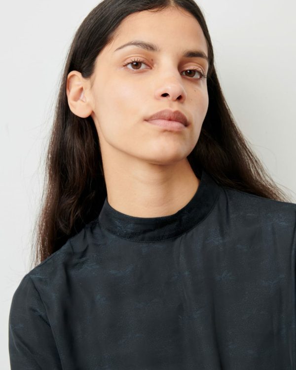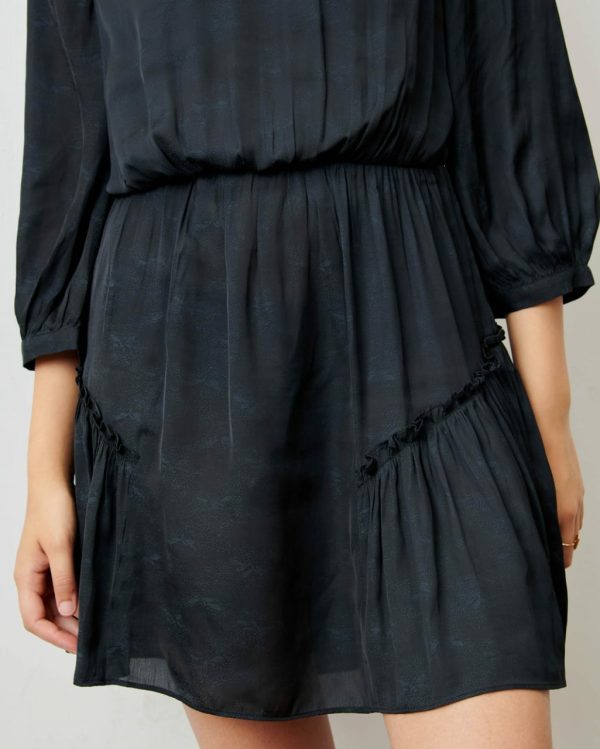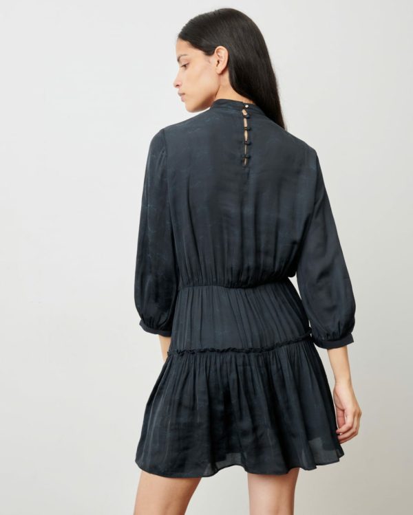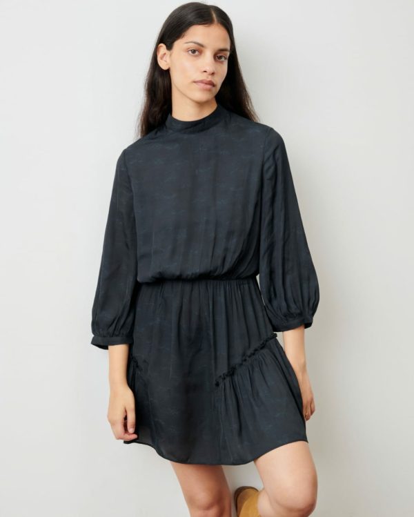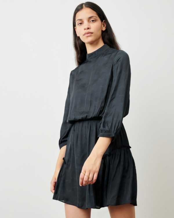 Lozen short dress in fluid jacquard satin, exclusive Sessùn pattern.