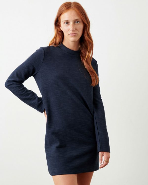 Oakland short dress in slub yarn interlock knitted in Portugal.