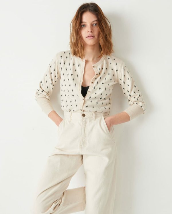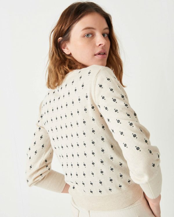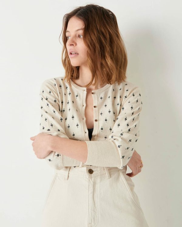 Arletti embroidered cardigan in stocking stitch knitting.