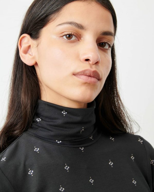 Ennio turtleneck t-shirt in printed viscose simple knit fabric, exclusive Sessùn motif.