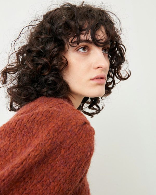 Nutty cropped sweater in irregular yarn large gauge knit, knitted in Italy.