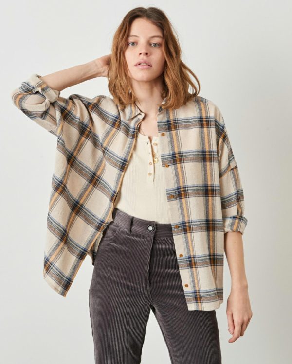 Deliwool shirt, inspired by men-style, in tartan crepon gaze woven in Italy, exclusive Sessùn.