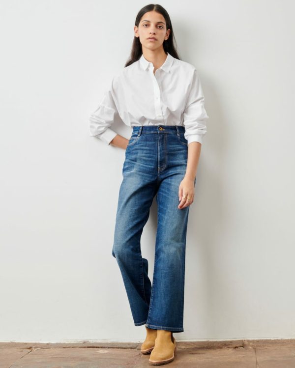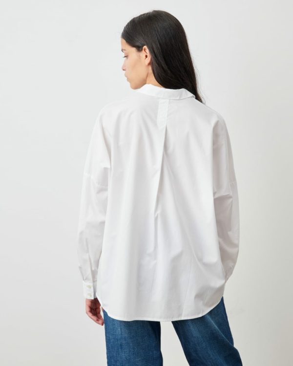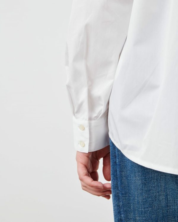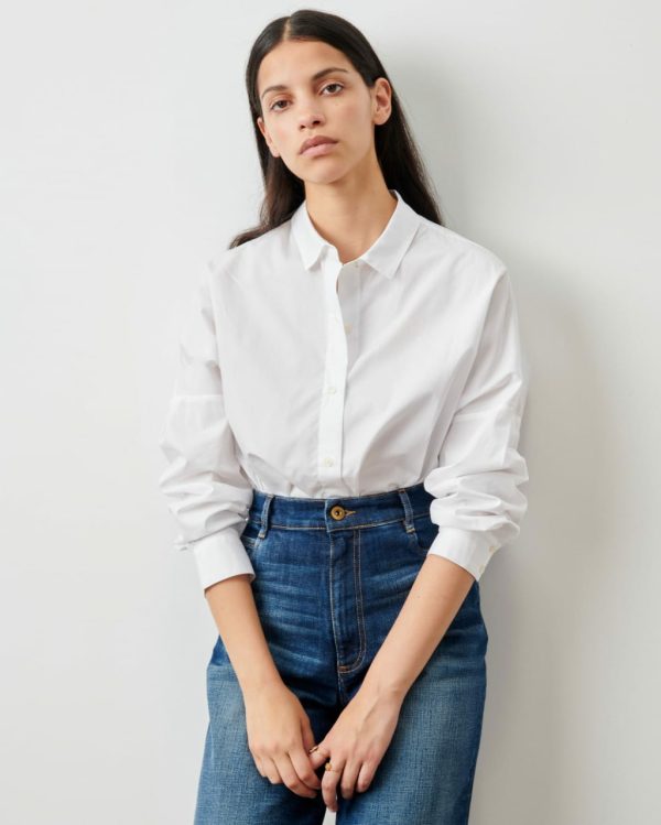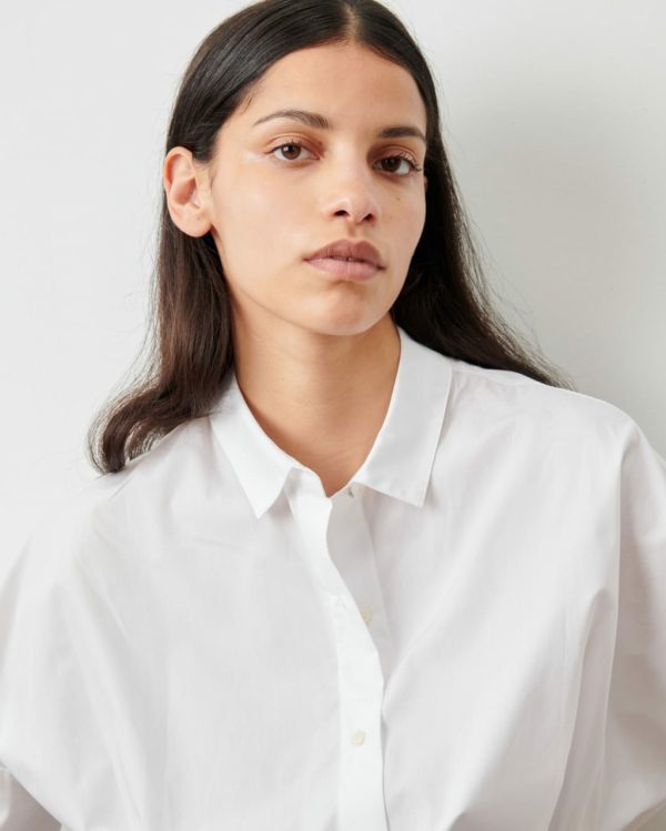 Maemi O shirt in compact organic cotton poplin, woven in Italy, inspired by a men’s shirt.