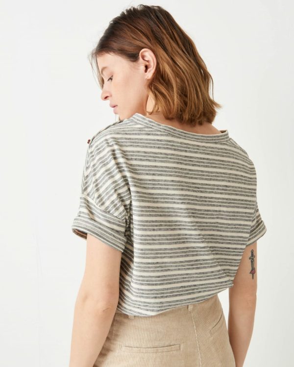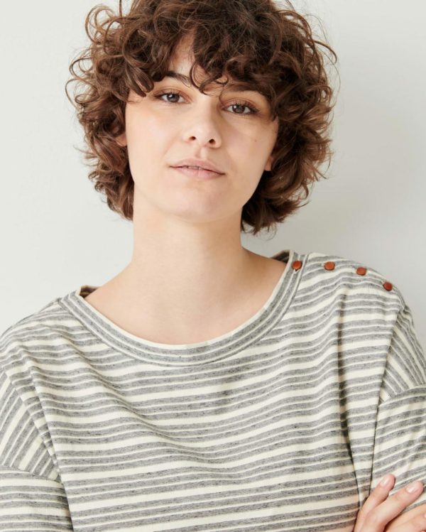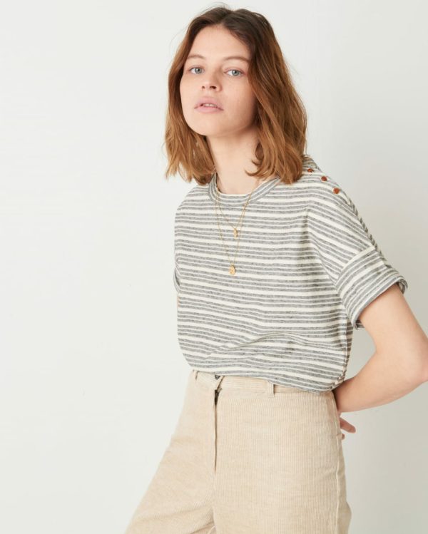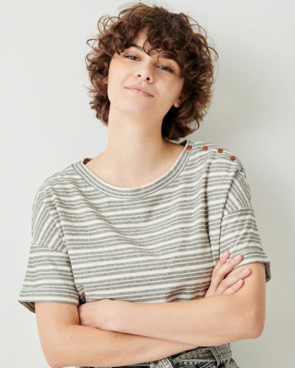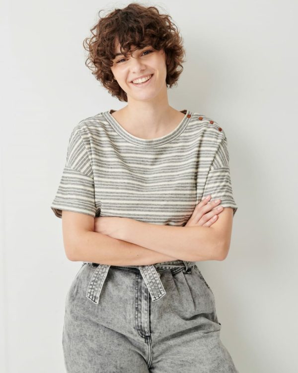 Alegria short sleeves t-shirt in two-colored fancy striped simple knit fabric.