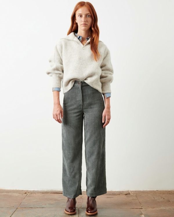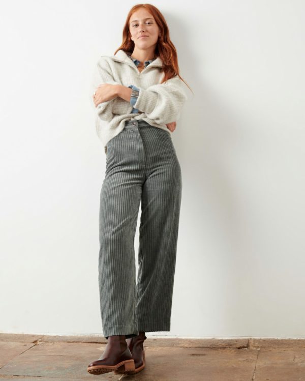 Cybill 70s-style high-rise trousers in corduroy, woven in Italy.