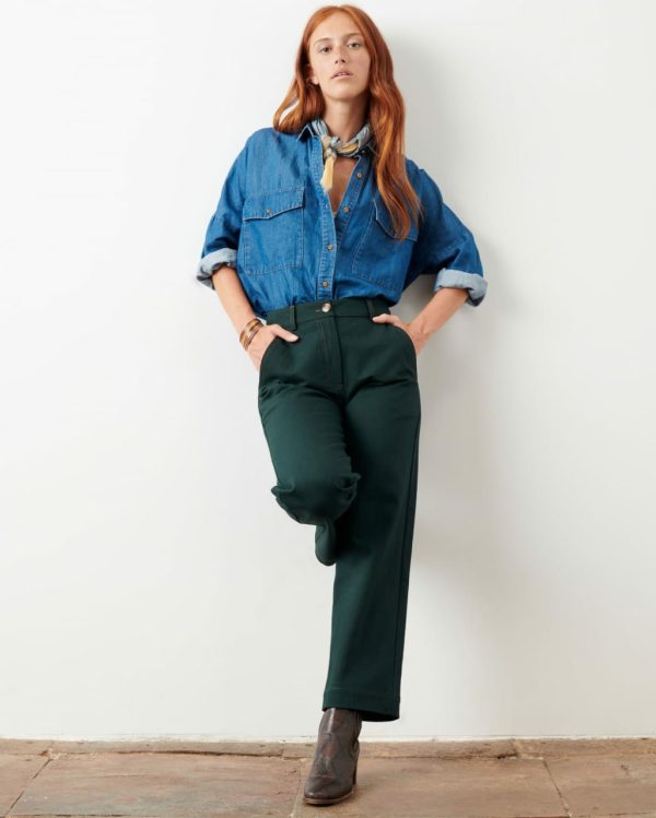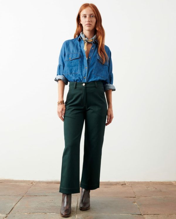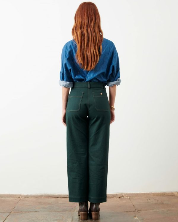Johannes A-line pants in heavy steep twill, emerized on the right side.