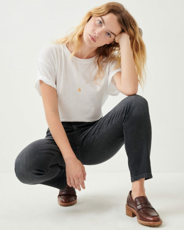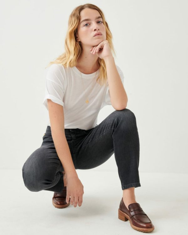Momon O 80s-style jeans in stonewashed denim, in organic cotton.